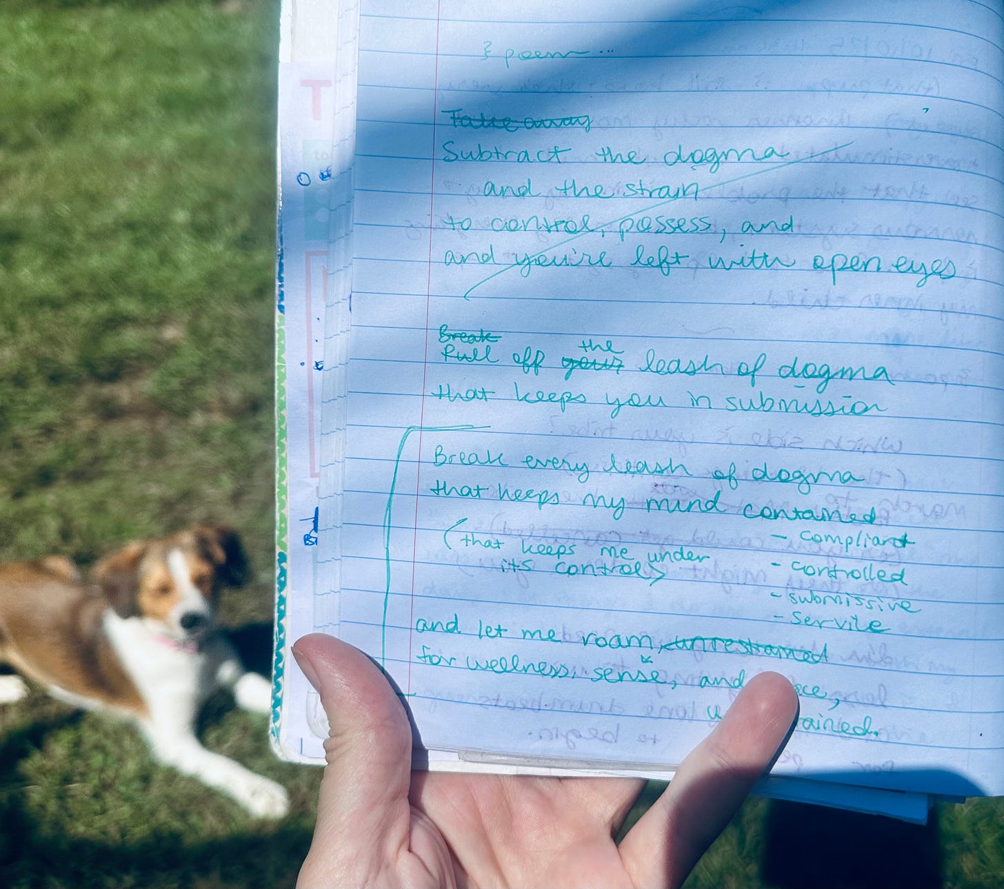 It occurred to me that I ought to post my behind-the-scenes notebook photos of my “Serenity Splash” poems here, too, because I somehow got into a rhythm of doing that with my corresponding social media posts (or, rather, “Stories,” now that I’ve learned what those are).