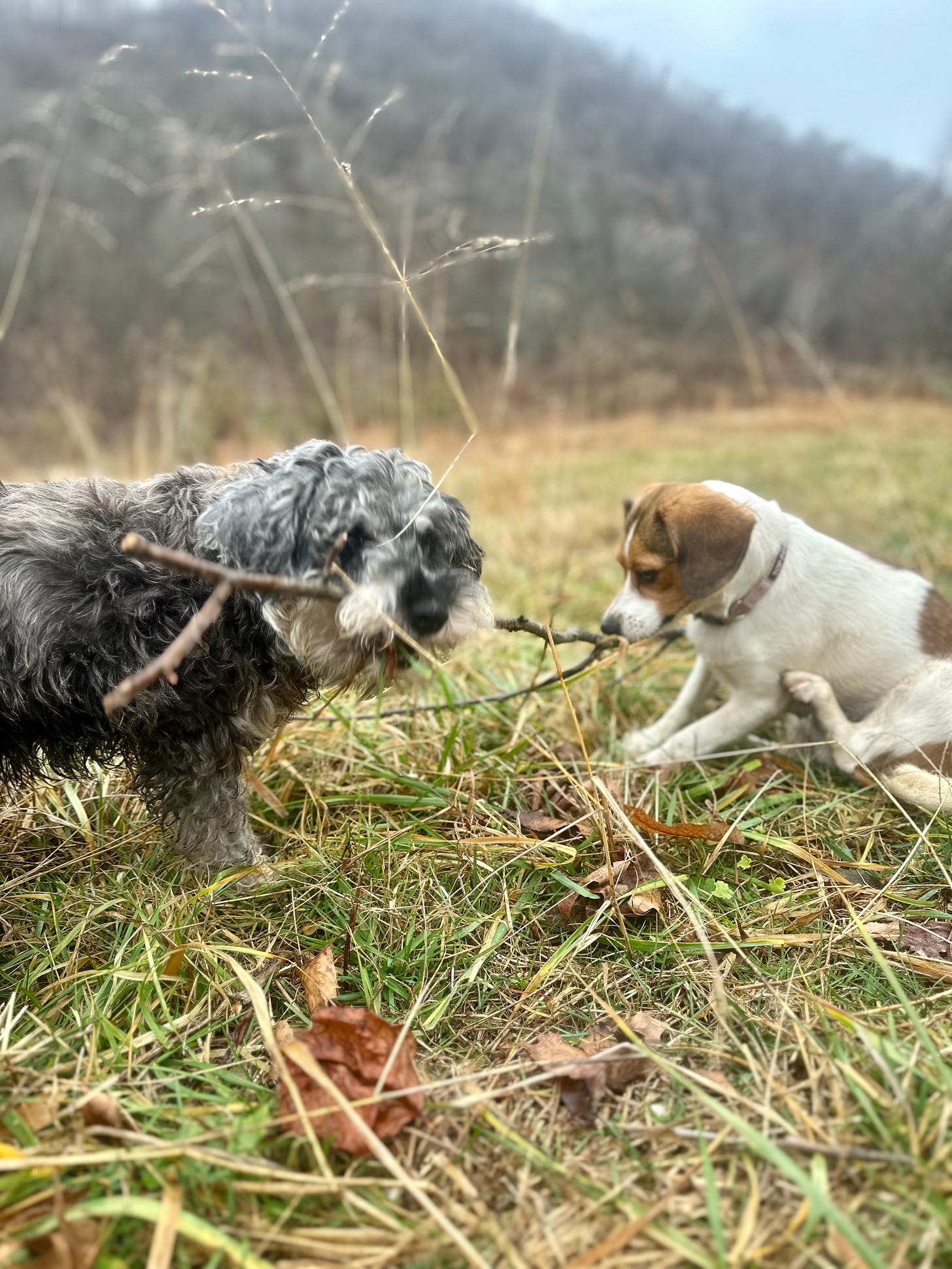 my dogs tug-of-warring with a stick yesterday