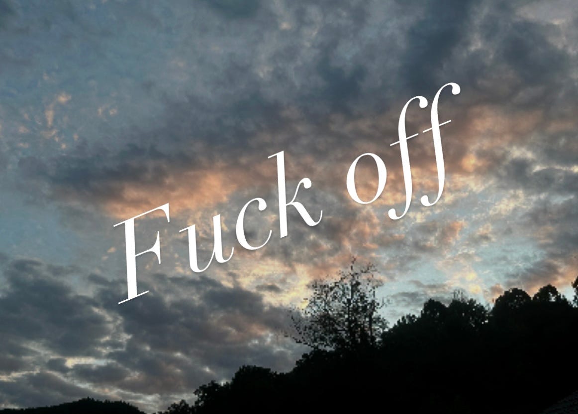 "Fuck off!"I made this lockscreen wallpaper for my phone, which I’m putting below in case you want to use it, too. Seeing it helps me push back against the ever-creeping pressures I feel from anxiety, tasks, kids, and other people.