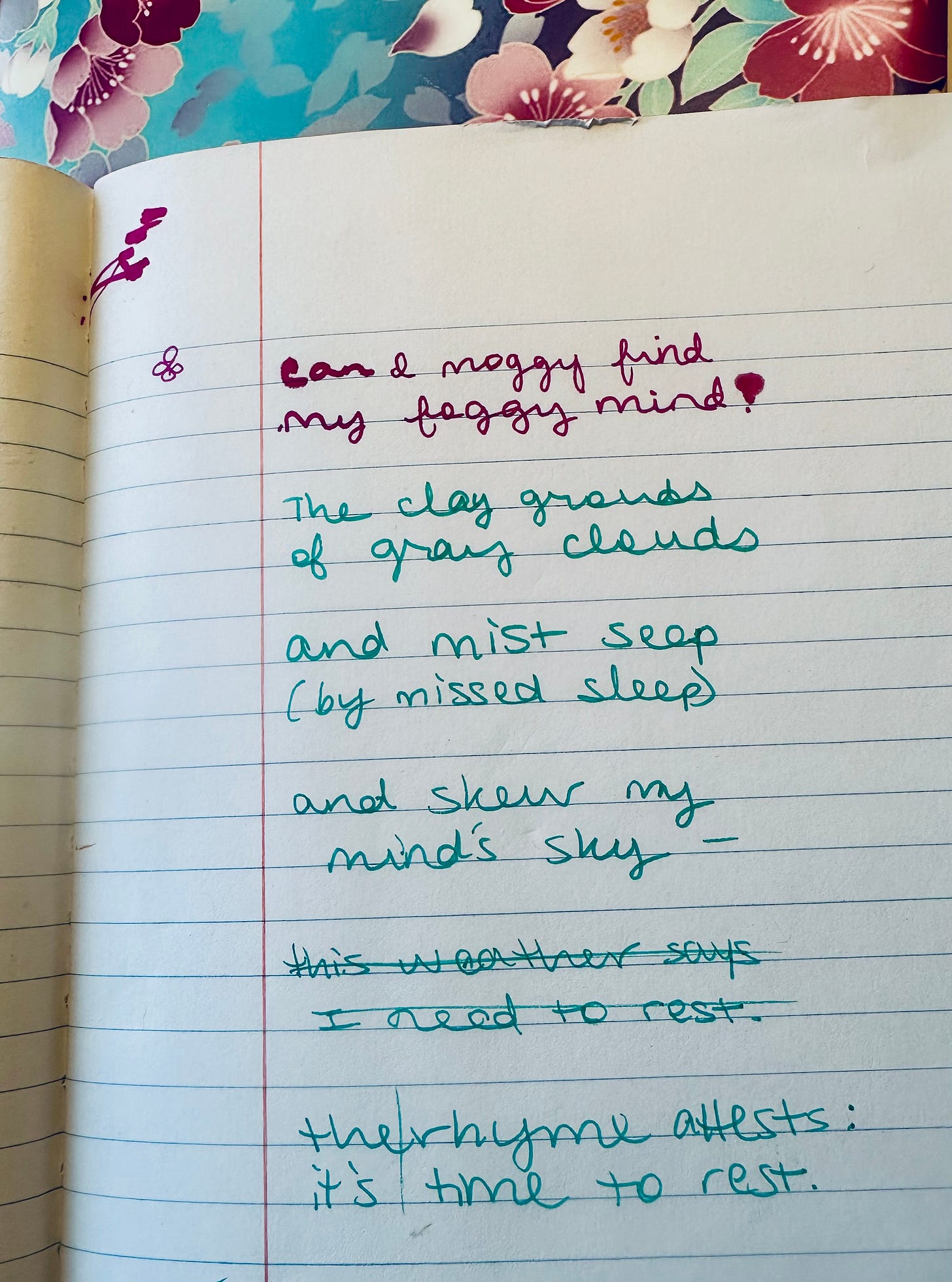 It’s been a tired time for my body and mind these days, and yesterday my mind was painfully foggy, so I started writing this poem for self-soothing/amusement.