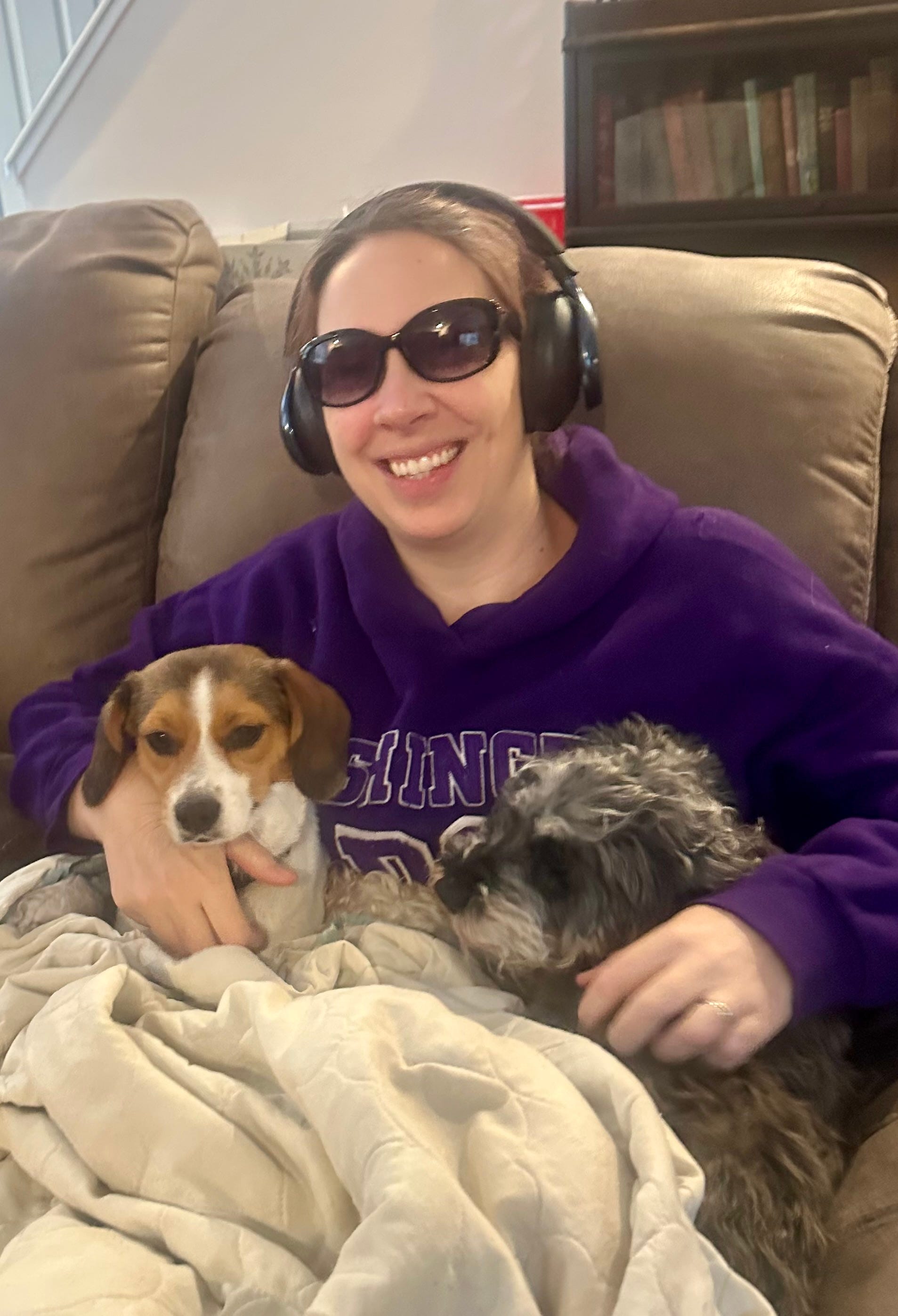 Sunglasses help a lot, too, to reduce my sensory overwhelm and calm down my nervous system. My family is used to me looking like this at home most of the time: