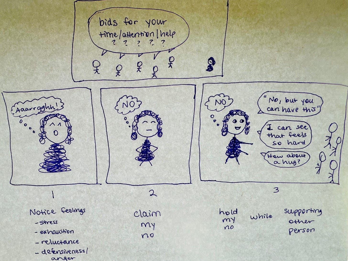 After a lot of practice, I’ve found a basic process that helps me “hold my no’s,” as it were. (It can involve metaphorically holding my nose as well!)