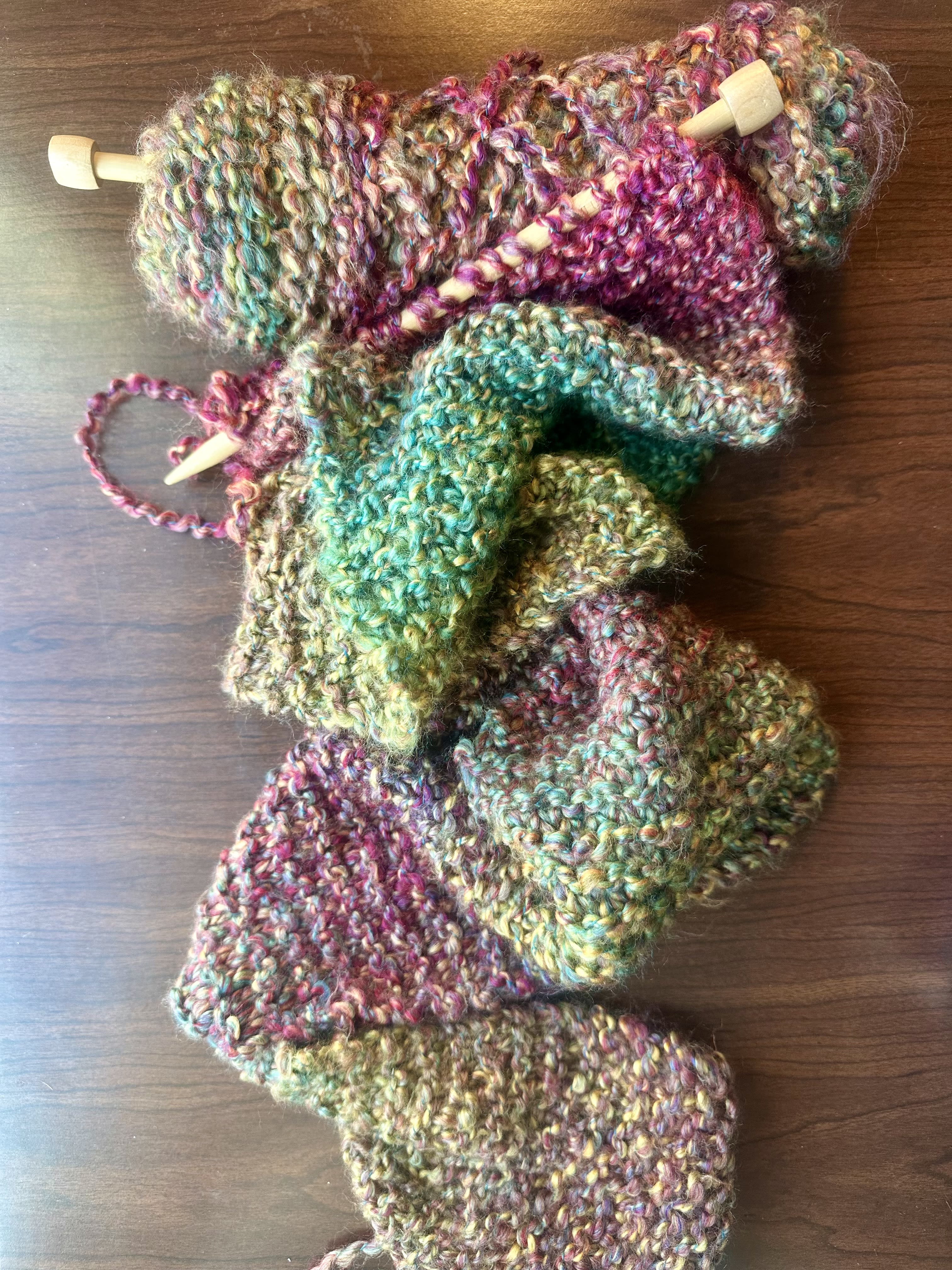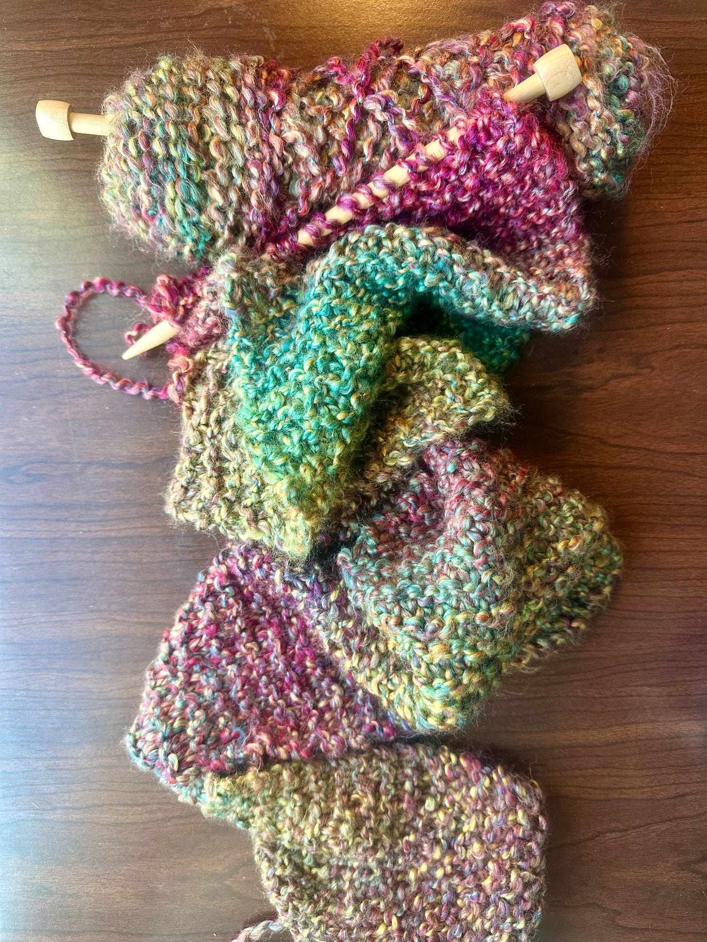 It has occurred to me that writing a novel is very much like knitting a scarf (another thing I enjoy doing): it can only be done one bit at a time over a long period of time—one word at a time, one stitch at a time. It’s not: