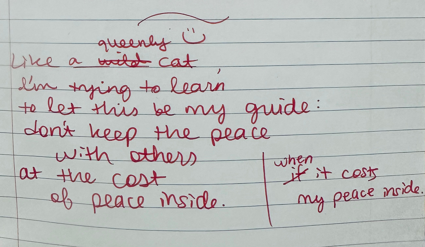 🪷Serenity Splashes🪷 Like a queenly cata reminder poem about when to NOT keep the peaceAnna EplinNov 02, 2025121ShareLike a queenly cat, I’m trying to learn to let this be my guide:don’t keep the peace with otherswhen it costs my peace inside.Cinna (who is not particularly queenly) amidst autumn loveliness earlier todayIn the notebookThanks for reading Whatever the River Brings! Subscribe for free to receive new posts and support my work.SubscribePreviousNext