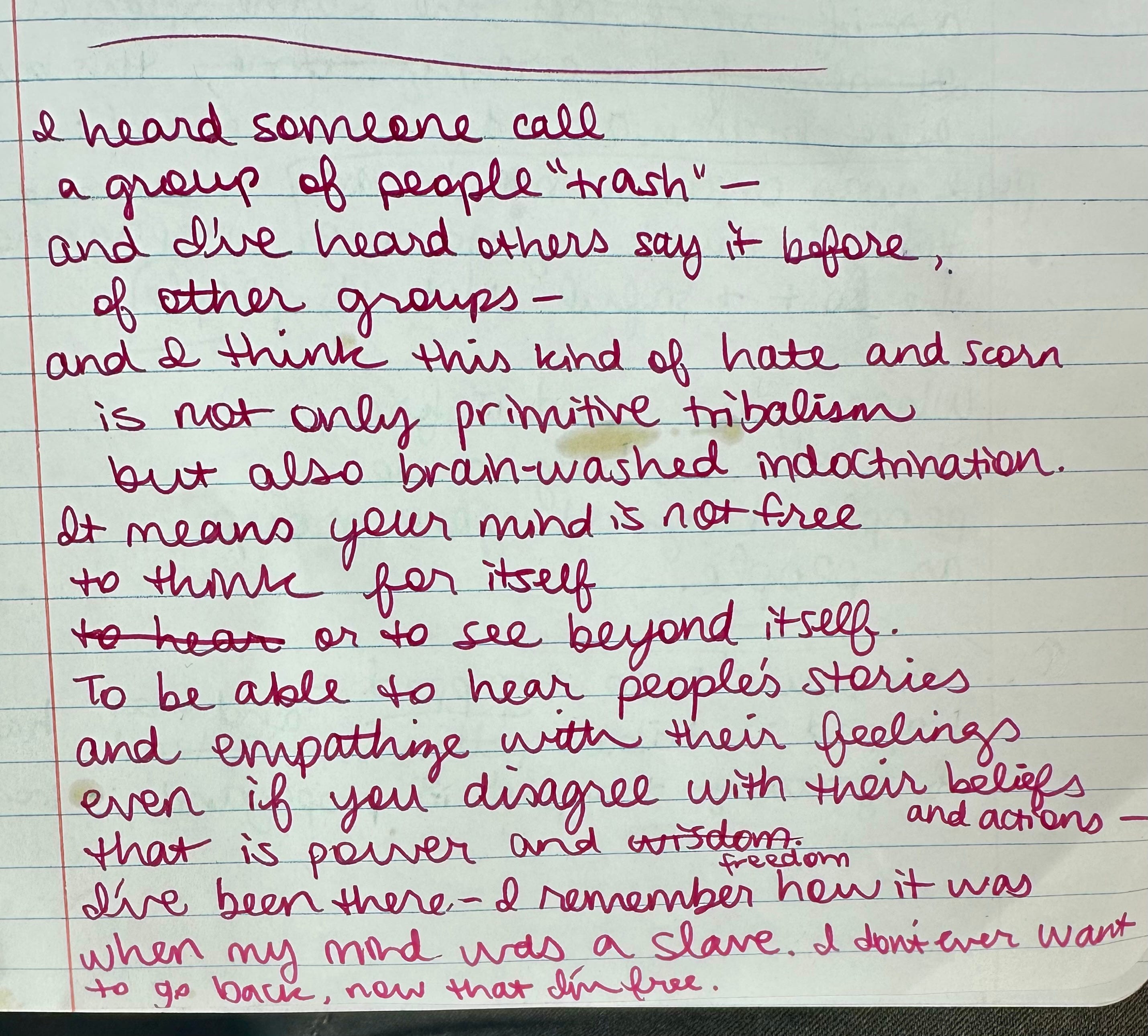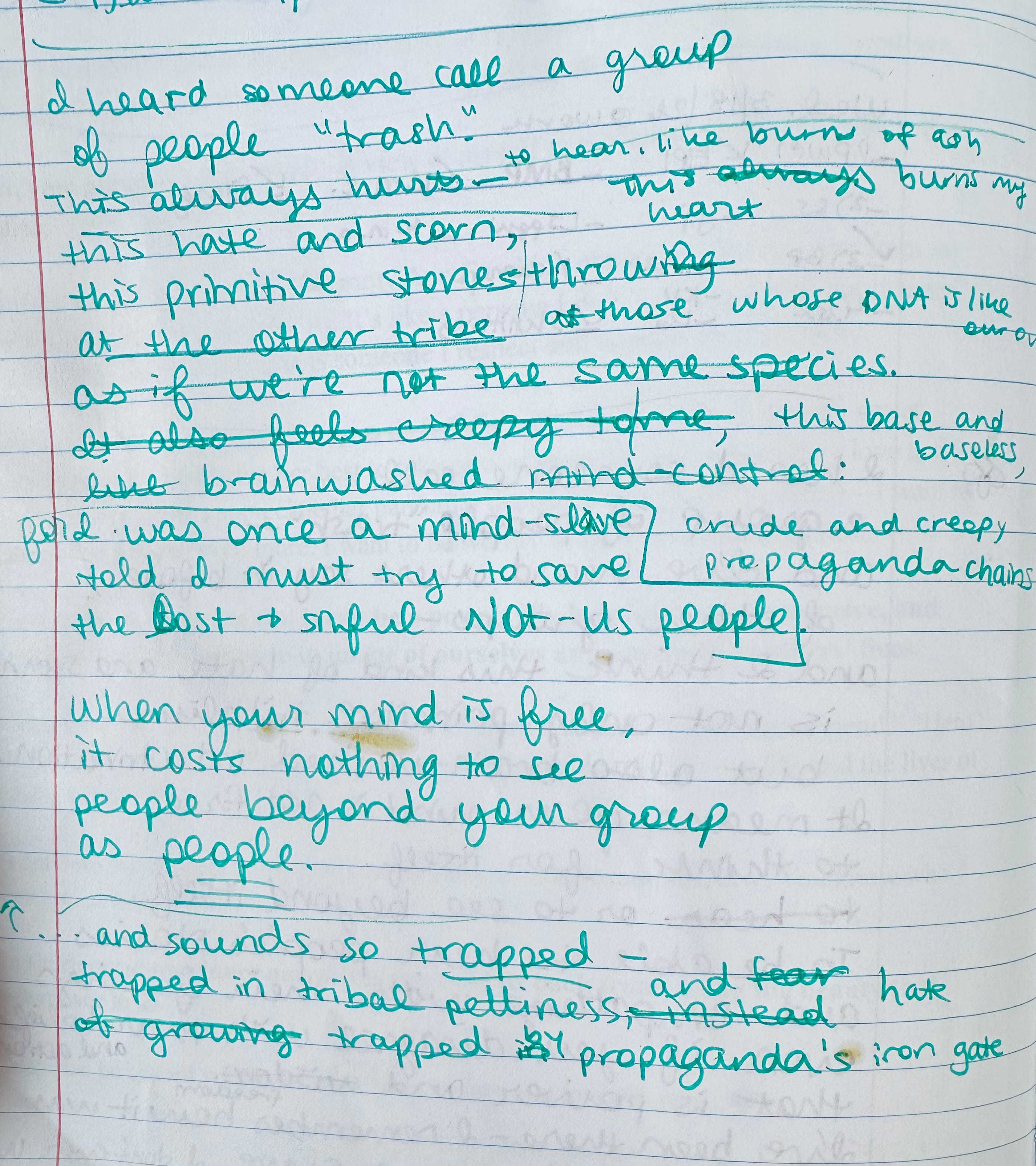 I don't think this is overly soap-boxy. In fact, I think it's a good reminder. We live in a society where shaming and dehumanizing others is so commonplace, like we grew up with that language and it's so easy to do without even thinking about it. Not just based on race/religion/gender/etc identities, but even stuff like "the people in that neighborhood" or "anyone who likes that movie." We might not feel the hate in our heart when we say those things but it's still there, insidious because it keeps us using that kind of language. So I think it's great to put a poem like this out there, because we all slip up and it's an important thing to remember! ❤️