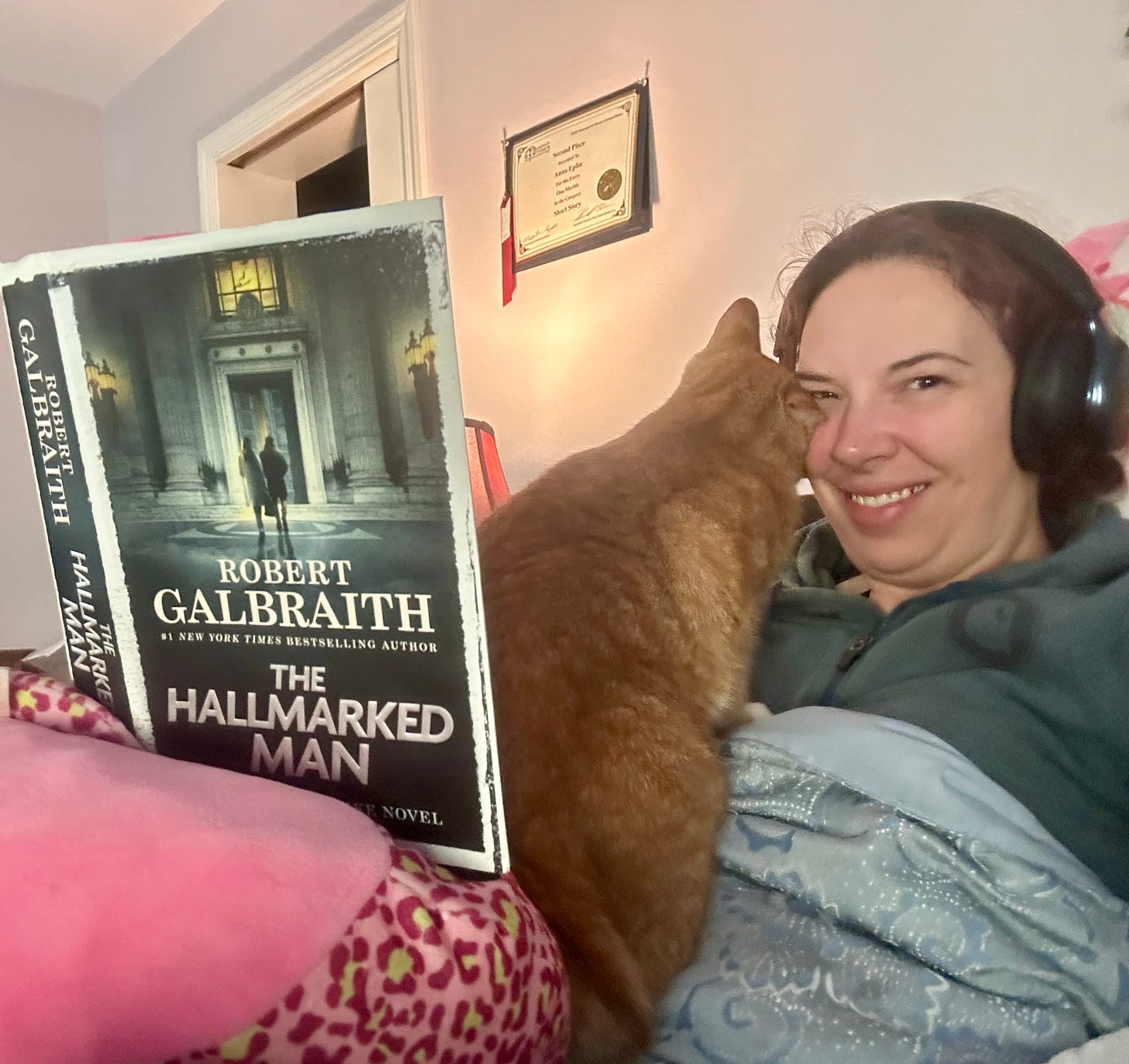 Displaying a writing award on my wall (because writing = self-care, for me)