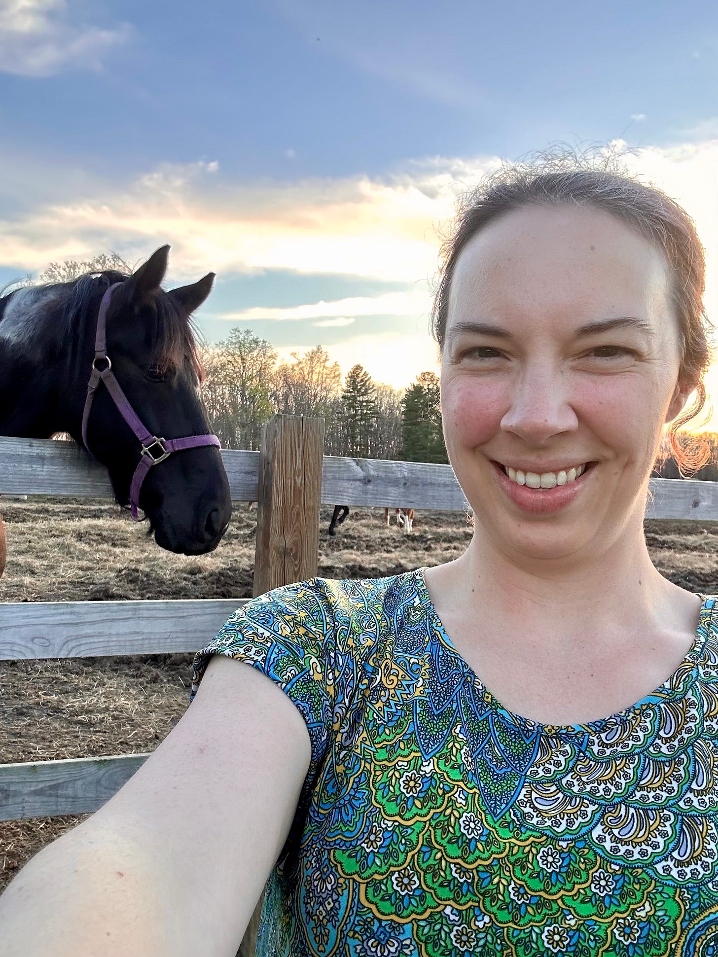 Last week, during the kids’ school spring break, we went to Pipestem Resort State Park, one of the WV state parks I hadn’t yet visited. It’s lovely, situated atop the mountain ridge of the Bluestone River gorge. The views are spectacular, especially the sunsets. Best of all (according to us), they have horses for trail rides! We fell hard…in love, that is!