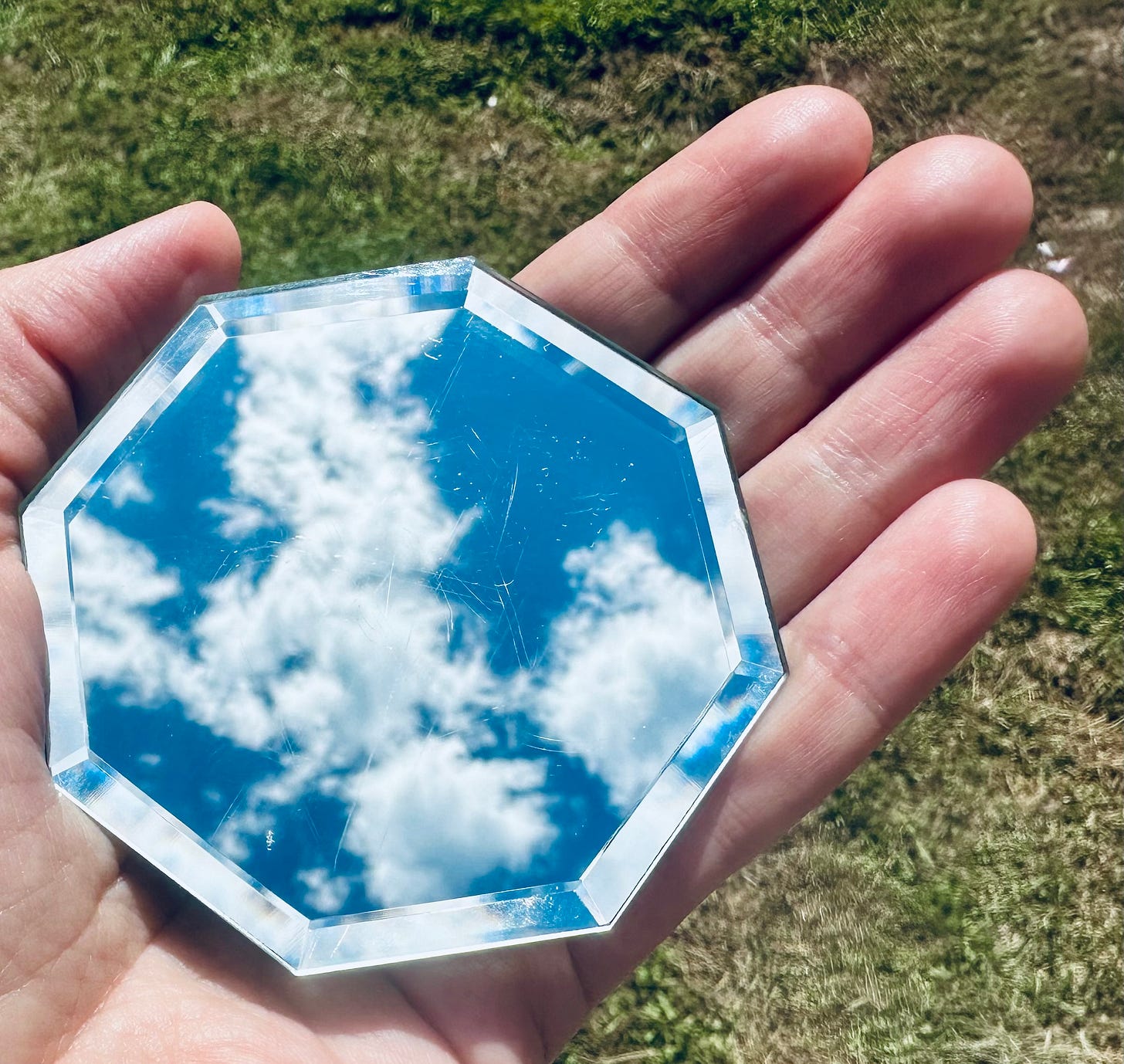 That's a cool mirror and you got a great shot of the sky! I've really been enjoying your empathy poems this past week.