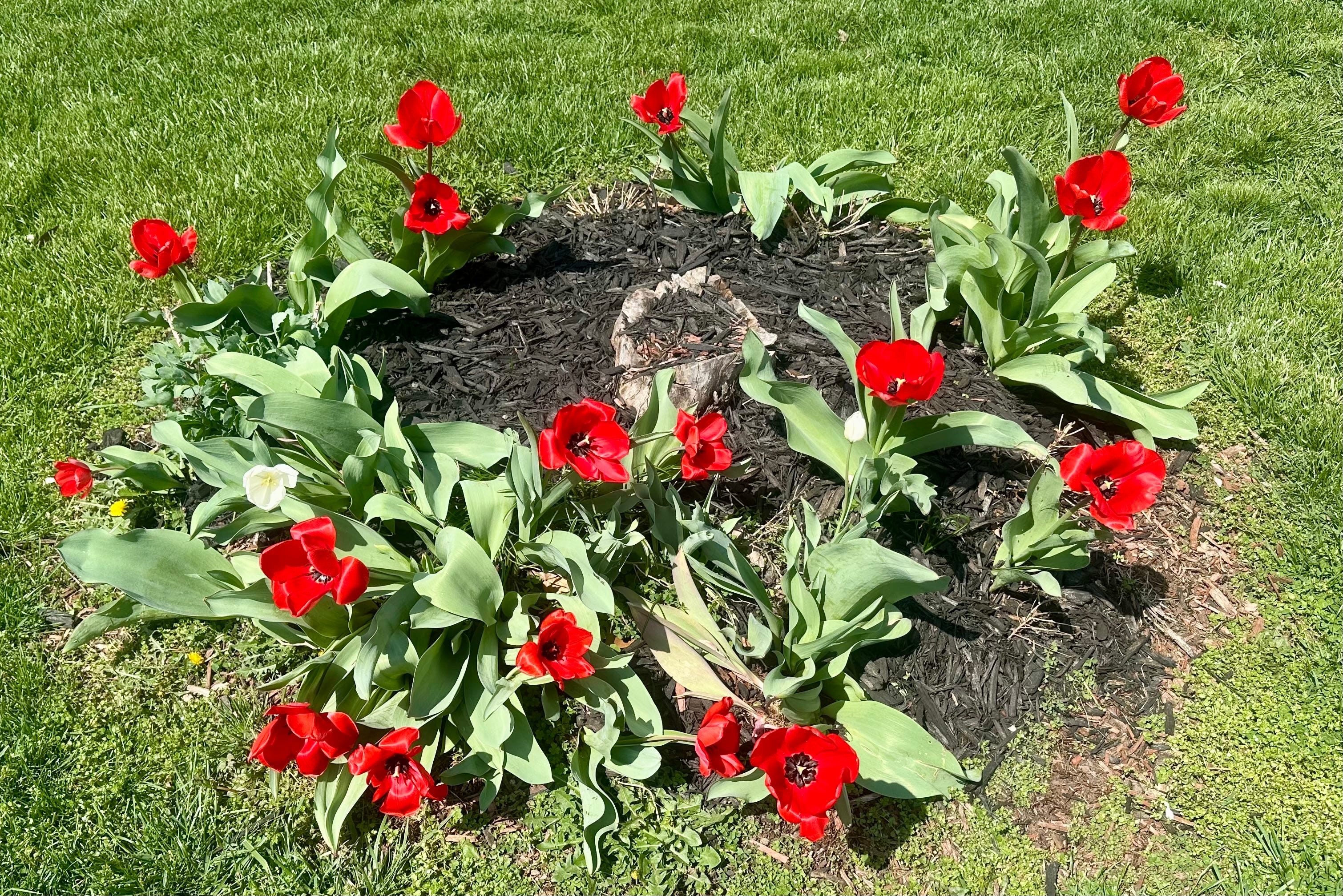 scarlet tulips, stretched open to the sun,